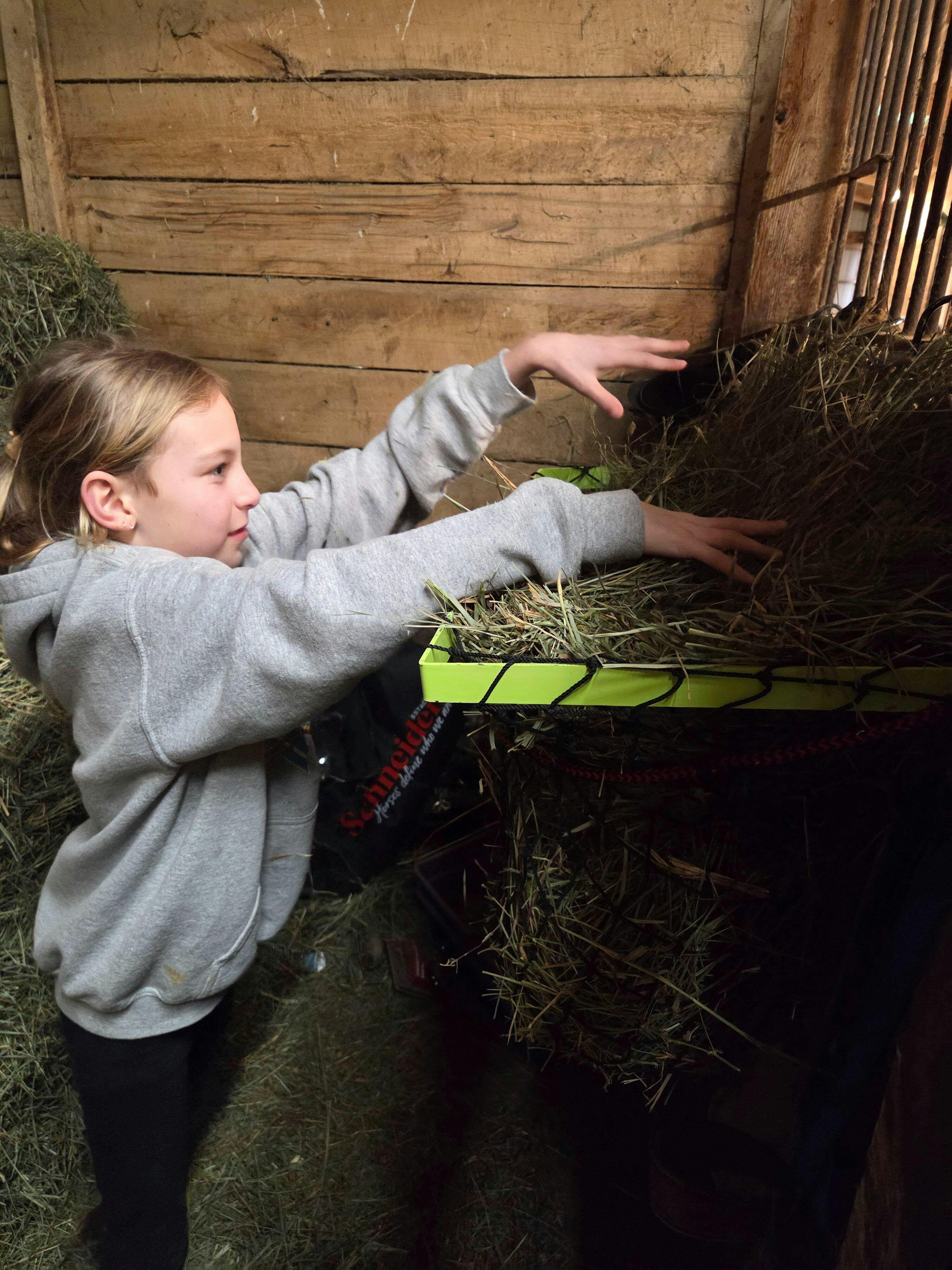 The Hay Chix® Half Bale Net (formerly known as 'Mini Net') attaches easily to a trailer, eye hook, fence, or tree; it's perfect for keeping your feeding program on track while on the go. This net holds about 1/2 of a small square bale (4-6 flakes.)