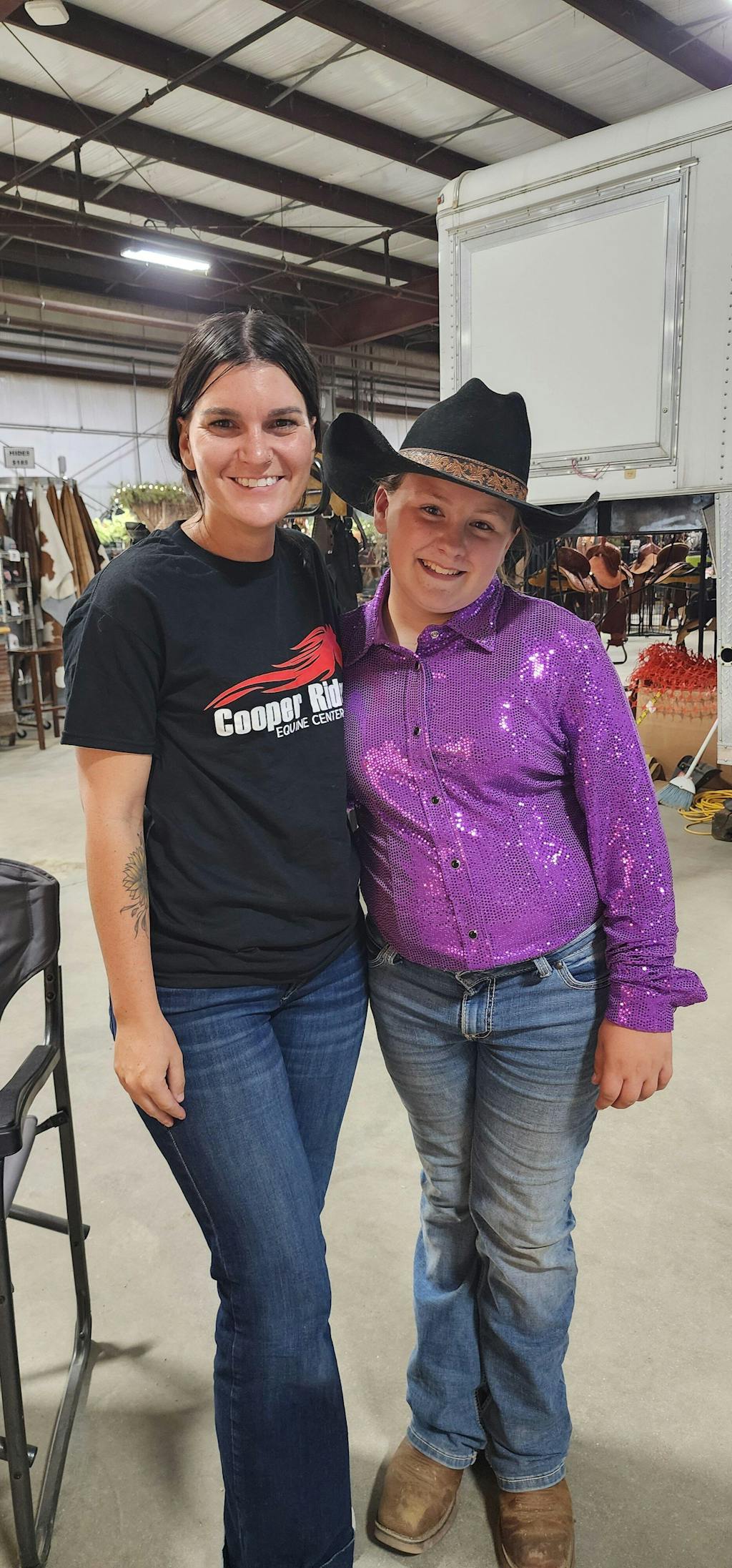 Our little girl loved the purple sparkly shirt. She also bought 3 tail begs and a hay net holder. Everything we bought has been great. She even made our daughter's day by watching her race. Couldn't ask for a better person along with her merchandise.